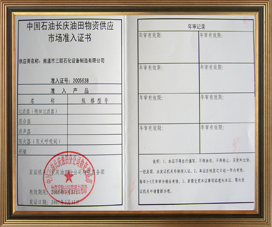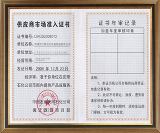 中國石油長慶油田物資供應市場準入證書