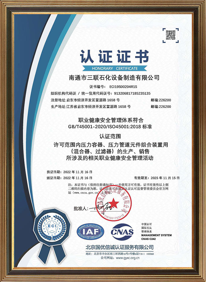 職業健康安全管理體系認證證書(中文)